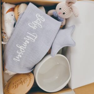 Personalized Comfort for Precious Moments: We believe in the power of personalization. That’s why our Feeding Time Baby Gift Box comes with a personalized comforter, bearing the baby’s name or a short, meaningful text. This special keepsake provides comfort and familiarity during feeding and beyond.